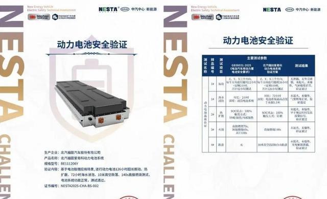 福田汽车自主研发的爱易科动力电池,具备了高安全性、长续航、高效能和场景适配性强等特点,以全优成绩通过五项极端应用场景测试,并获得国家权威机构中国汽车技术研究中心颁发的动力电池安全NESTA验证证书,爱易科也成为了国内第一个通过中汽研动力电池安全NESTA验证的商用车动力电池品牌。